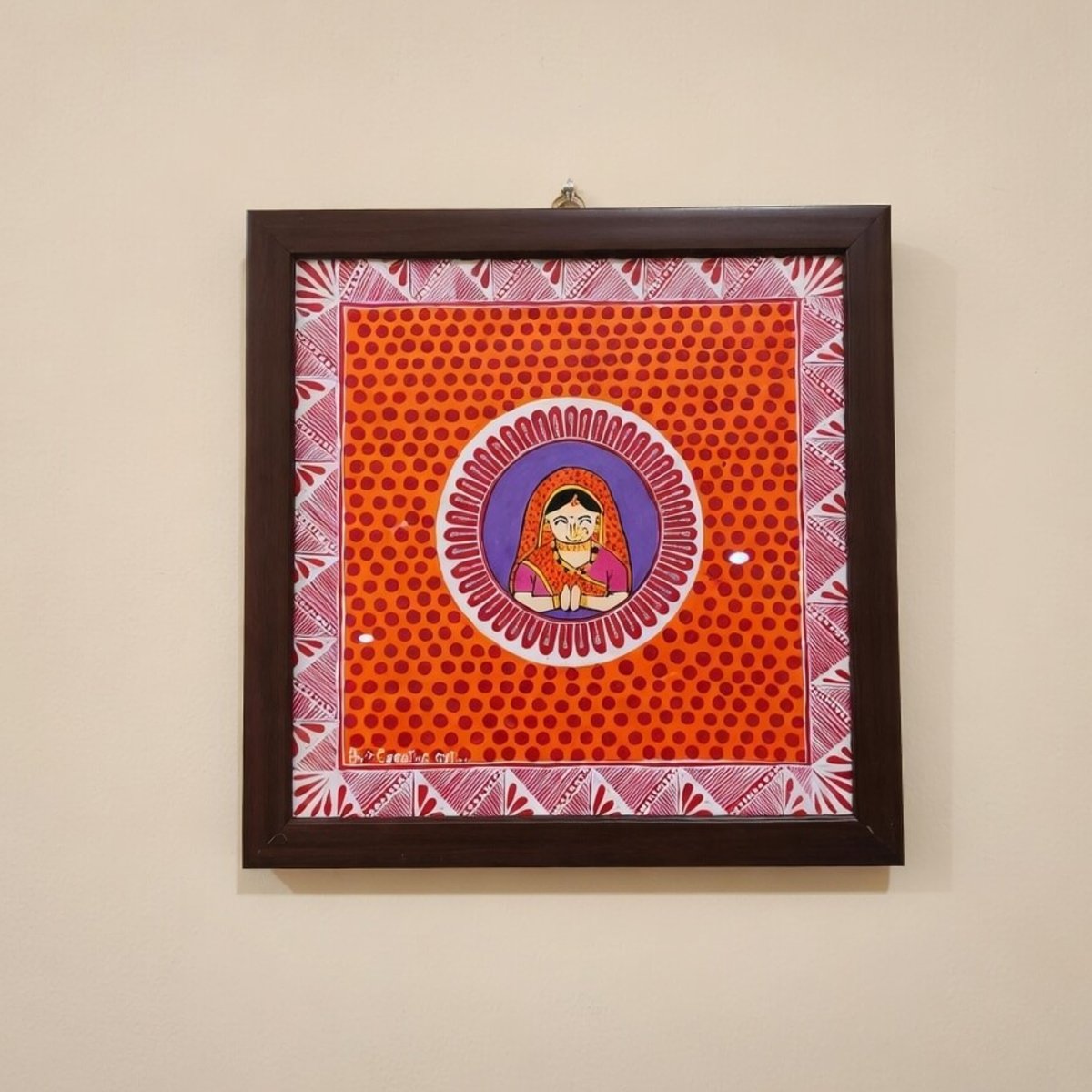 Adorn your walls with this Elegant Kumaoni Aipan Art Wall Frame. Sized at 15cm length and 20cm width, it showcases authentic Aipan patterns with a beautiful central motif on a bright red dotted background. Hand-painted with love, this frame brings prosperity, positivity, and the rich cultural heritage of the Himalayas into your space.