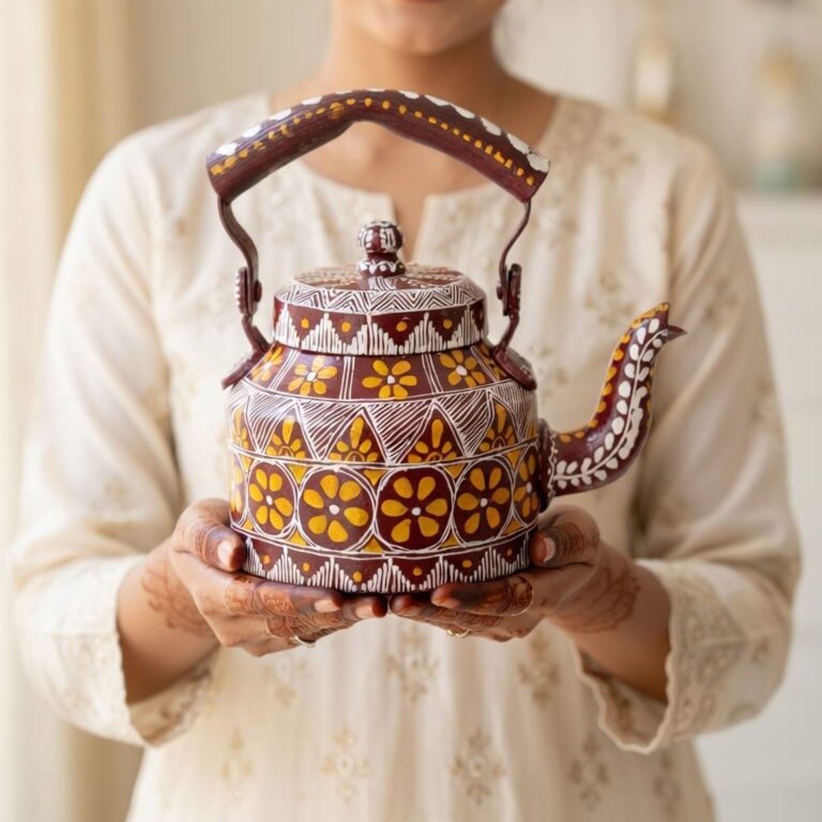 Bring home the beauty of traditional Himalayan craftsmanship with this exquisite Pahadi Aipan Art Decorative Kettle. Carefully handcrafted and hand-painted by skilled artisans, this piece reflects the rich cultural heritage of Uttarakhand.
