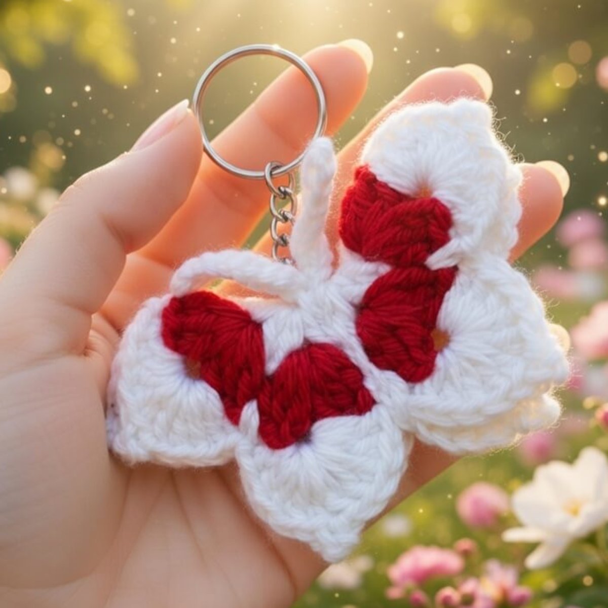 Add a touch of handmade charm to your everyday essentials with this beautifully crafted crochet butterfly keychain. Soft yarn se bana hua yeh elegant butterfly design red aur white color combination mein aata hai, jo ise eye-catching aur unique banata hai.