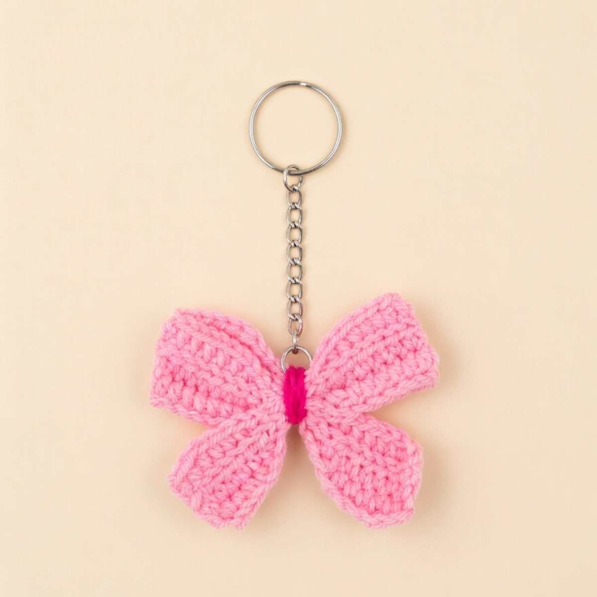 Adorable handmade pink crochet butterfly/flower keychain. This cute and soft keyring accessory is perfect for adding a touch of charm to your keys, bag, or backpack. Carefully handcrafted with love using high-quality yarn. Total length: 8 cm. Lightweight, durable, and makes a lovely gift for girls, women, or anyone who loves cute accessories.